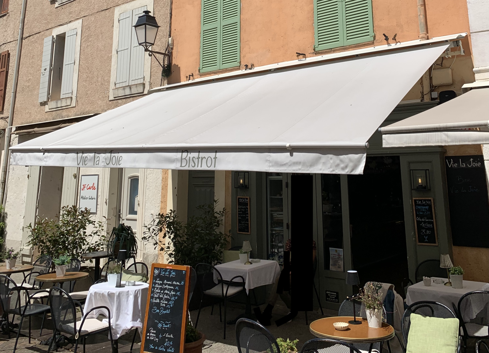 Dans la rue commerçante du village, bistrot avec terrasse, salle et réserve