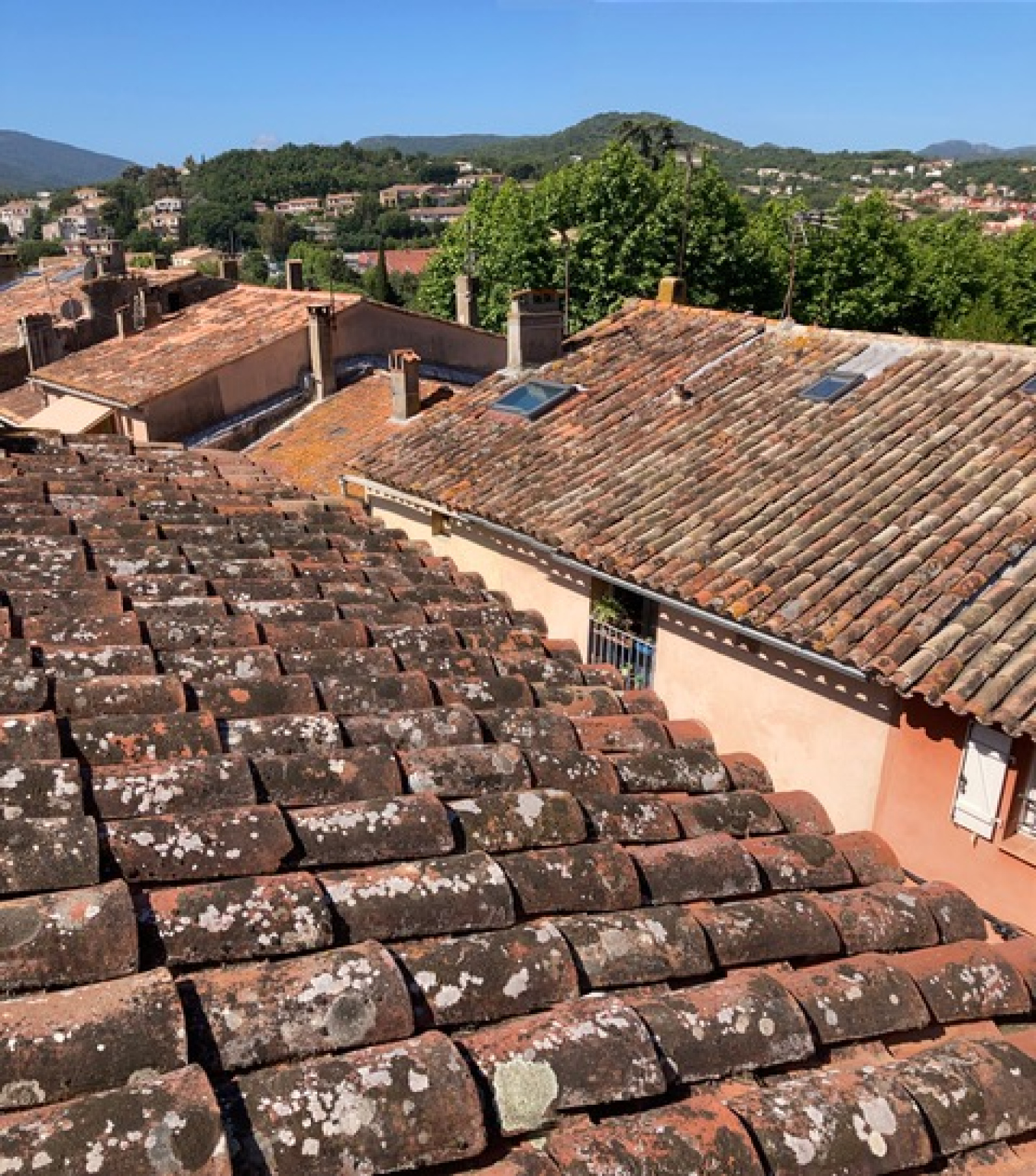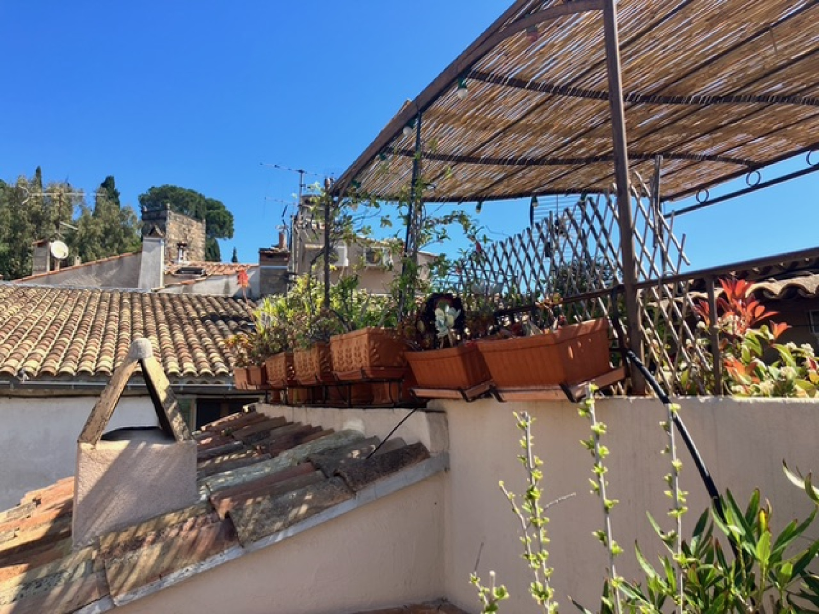 EXCLUSIVITE. Maison de village dans le coeur histiorique de Cogolin. Rez-de-chaussée avec entrée et un studio, permier étage avec une chambre + salle de bain, un salon / bureau, deuxième étage séjour avec cuisine ouverte, buanderie. Terrasse de toit avec vue panoramique sur le village, exposition sud ouest. Accès à un parking privé loué par la mairie juste en face de la maison. Charme et facilité !