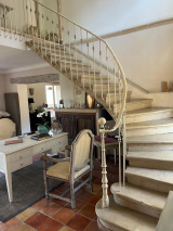 Entrée sur un très grand séjour avec cheminée, ouvert sur une belle terrasse aux elles ferronneries. Une cuisine à l'ancienne entièrement améangée. Deux chambres avec salle de douche ouvertes sur une terrasse couverte. La chambre d emaître aux dimensions exceptionnelles avec sa salle de bain attenante.